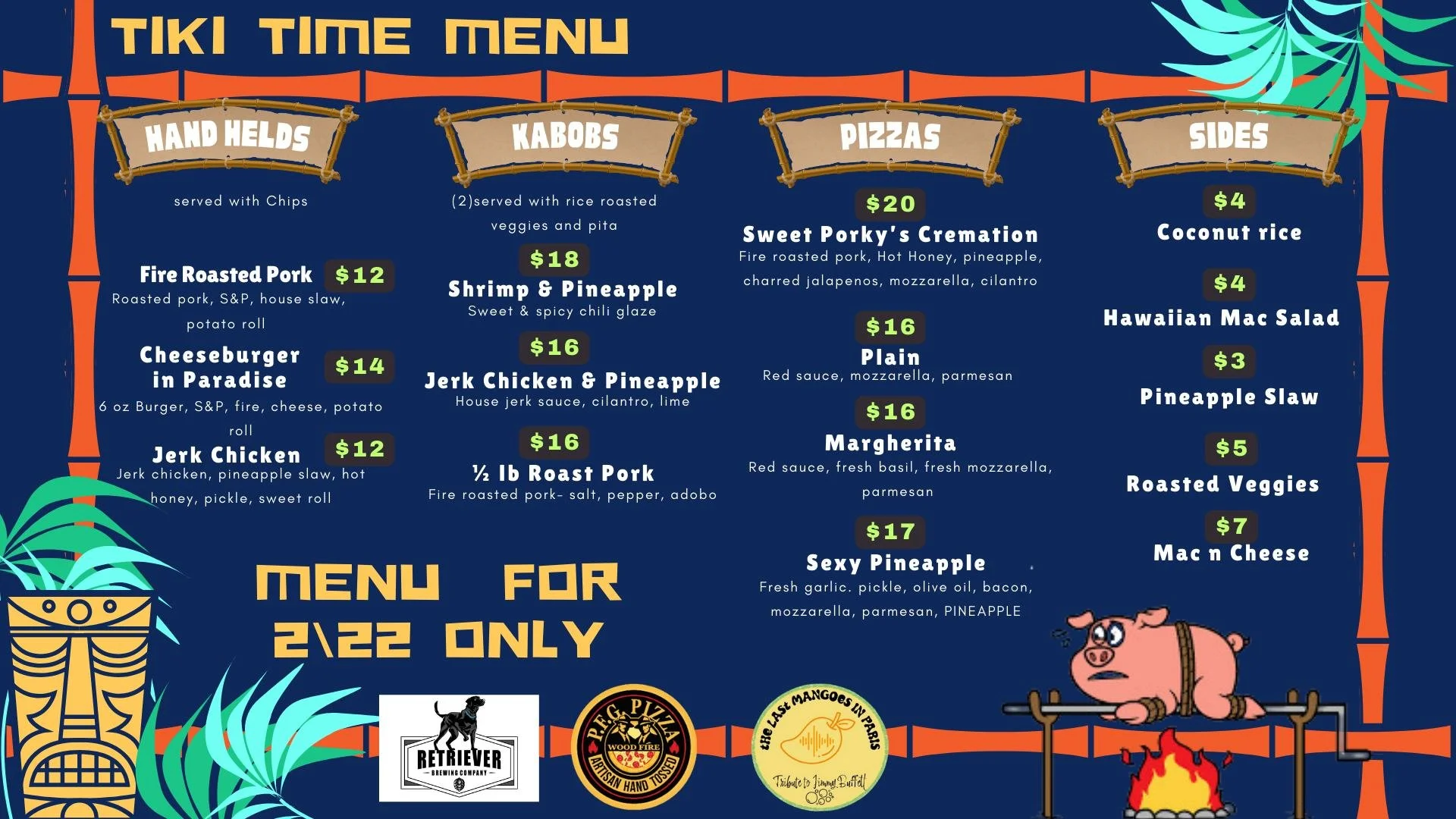 The current menu options can be viewed at the menu tab above or by clicking here